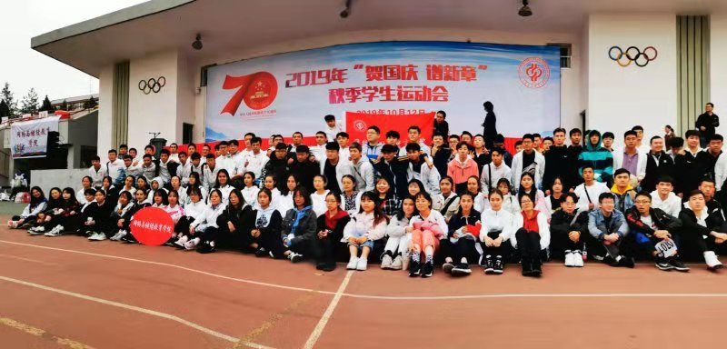 2019年10月12日上午8点我校“贺国庆 谱新章”新生秋季运动会在红旗操场正式拉开帷幕,鲍校长在开幕式上致词。民族班与国际班的同学们满怀高昂的热情,参加了本次运动会。