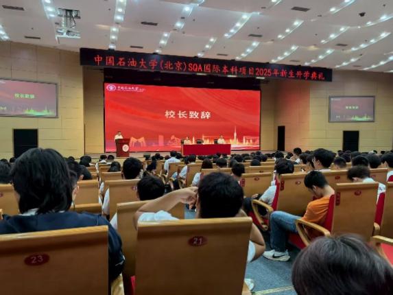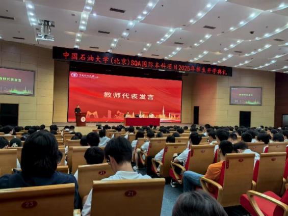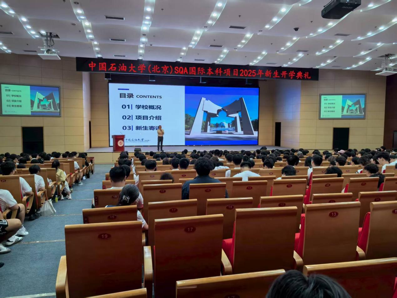 院长陈春茂为新生讲授“开学第一课”。他首先介绍了学校的光辉历程,强调beat365唯一官方网站(北京)“因油而生、因油而兴、因油而强”的办学特色,以及学校在学科建设、师资队伍和国际合作方面取得的成就。随后,他详细讲解了SQA项目的教学管理体系、学生支持服务以及丰富多彩的学生活动,鼓励同学们充分利用学校提供的国际化平台和资源。最后,陈院长寄语新生要牢记责任与担当,尽快培养良好的学习和生活习惯,努力成长为“面向世界、心怀祖国、德才兼备”的国际化人才,在未来的大学生活中不断超越自我,实现人生价值。