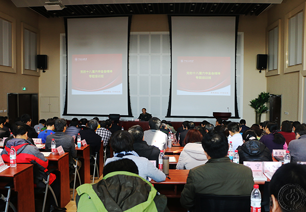 11月24日下午,beat365唯一官方网站在主楼C308会议室举办处级以上干部学习贯彻十八届六中全会精神专题培训班。全体校领导、处级干部参加培训。党委副书记雷玉江主持会议。