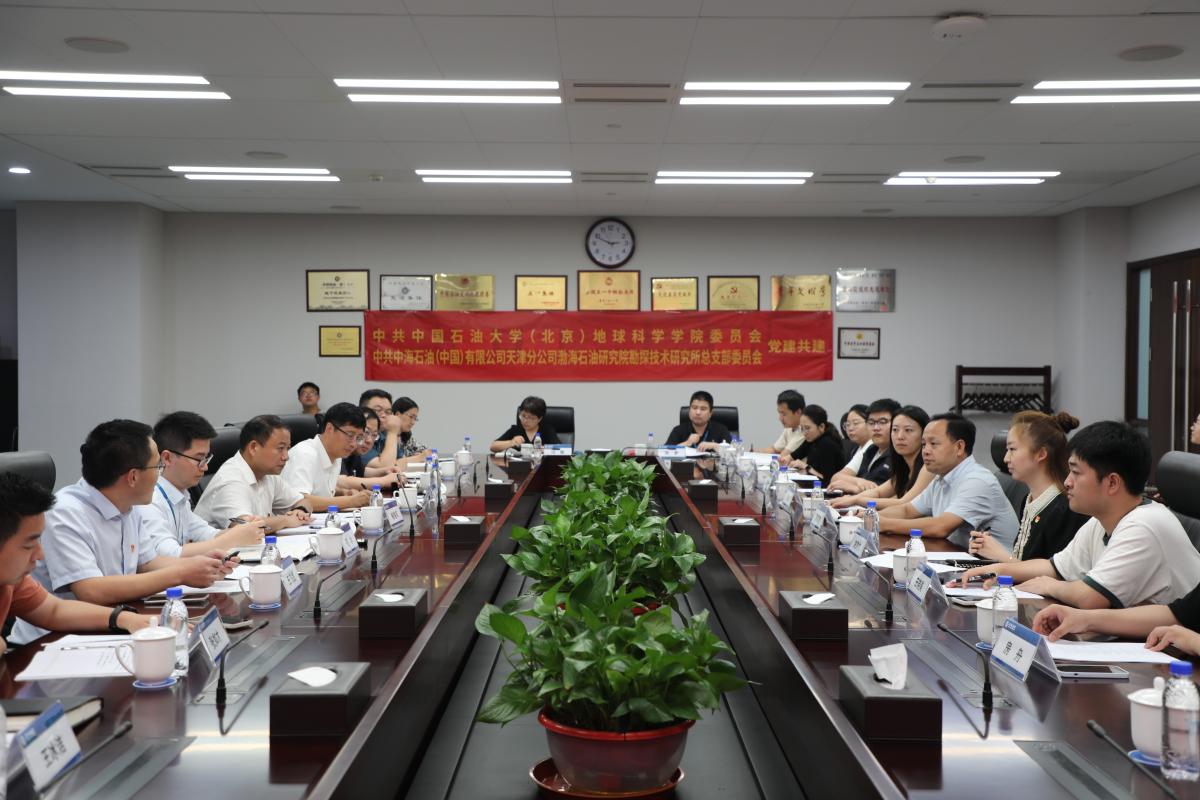 为全面贯彻落实习近平总书记关于能源安全新战略重要指示批示精神和科技创新的重要论述,深入推进党纪学习教育,创新党建活动载体,不断推动党建与科研深化融合,7月16日,beat365地球科学学院赴中海石油(中国)有限公司天津分公司渤海石油研究院勘探技术研究所开展党建共建活动,签署党建共建协议和地球科学科普教育基地暨大学生社会实践基地共建协议书,并为基地揭牌。