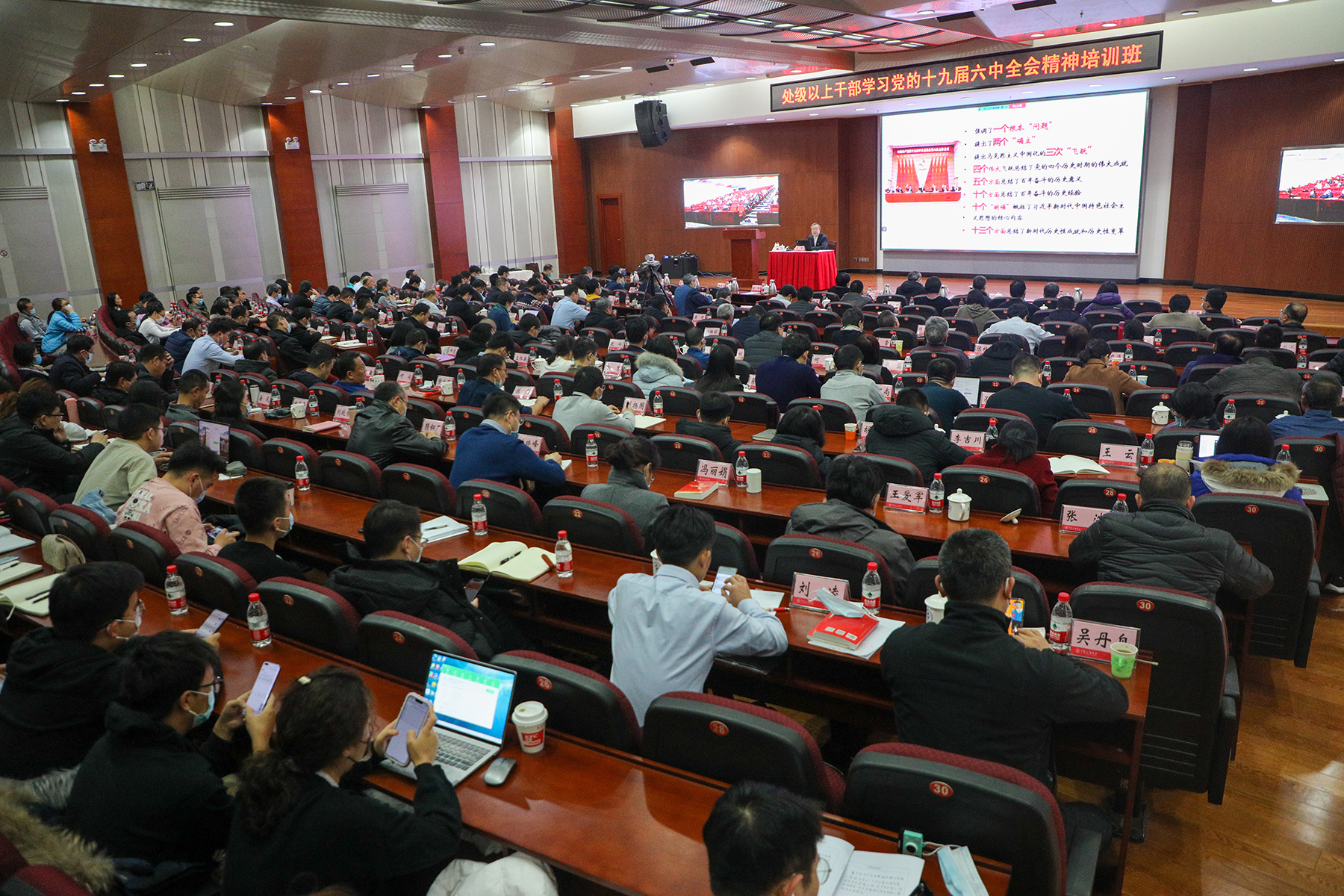11月28日至30日,beat365唯一官方网站举办学习党的十九届六中全会精神培训班。全体校领导、处级干部参加培训,克拉玛依校区处级以上干部和全校辅导员参加部分培训课程。