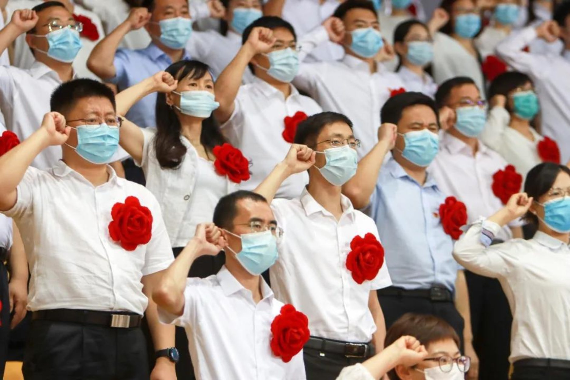 陈峰在总结讲话中代表学校党委向所有荣获纪念章的老党员致以崇高的敬意,向受表彰的先进集体和个人以及新加入党组织的党员表示热烈的祝贺,向为学校改革发展事业作出努力和贡献的各级党组织、全体党员和全校师生表示衷心感谢。