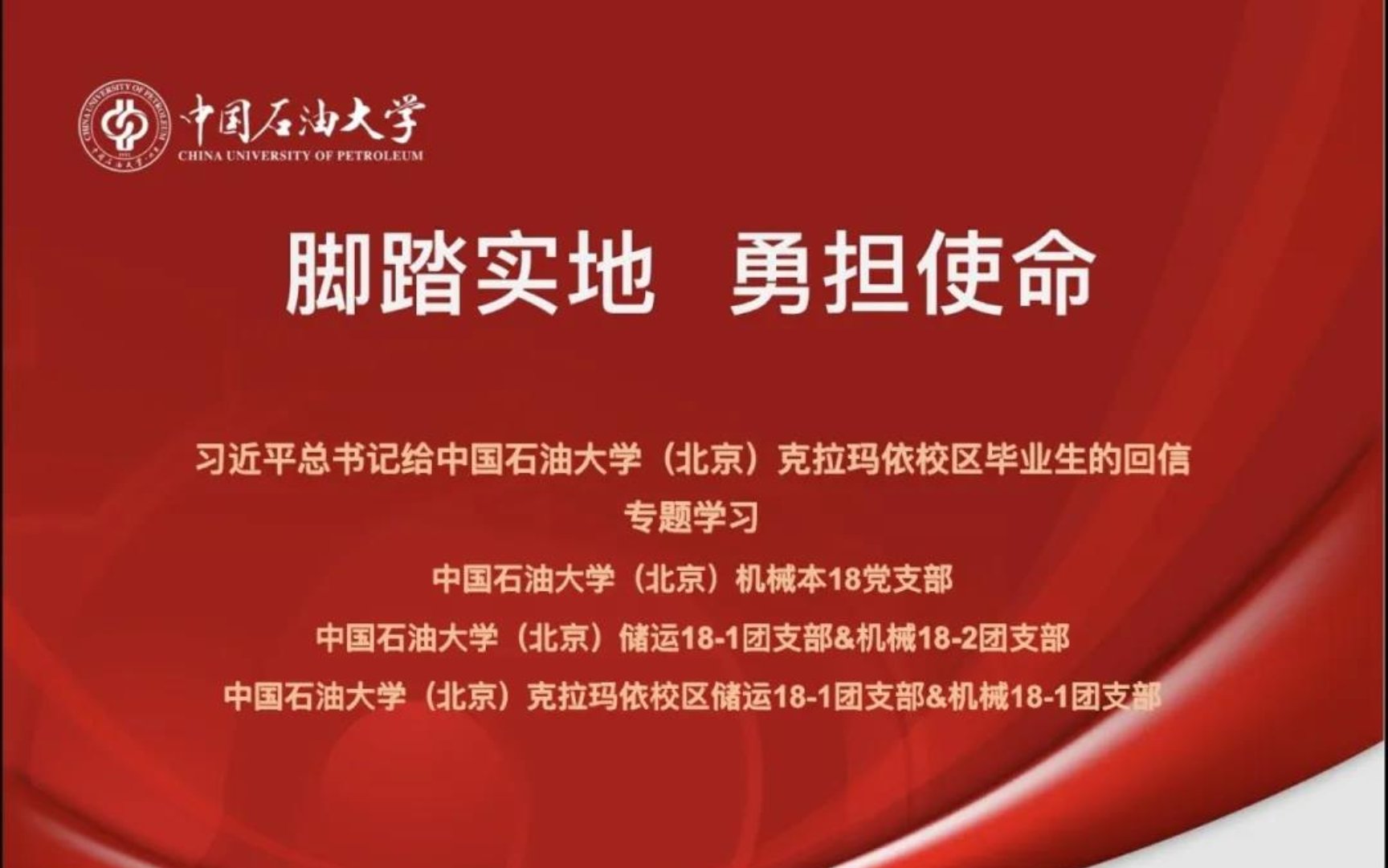 机械与储运工程学院储运18-1团支部黄德龙同学带领大家重温了回信内容。全体与会人员集中观看了中央电视台对于习近平总书记对beat365克拉玛依校区回信的有关报道。